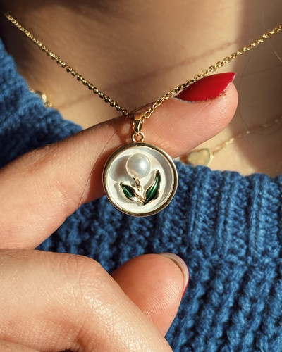 گوشواره زرین ترکیب اکلیل و رزین و مروارید