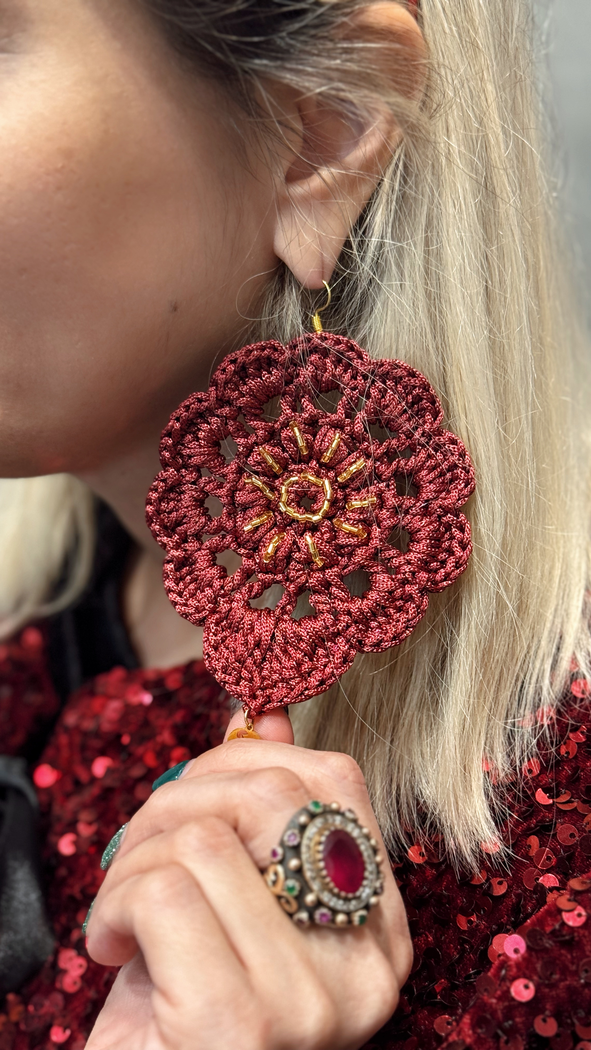 گوشواره قلاببافی دستبافت با منجوق دوزی های ظریف و هنرمندانه یک اثر هنری منحصربفرد و زیبا که چشم هر بیننده ای رو به خودش جذب میکنه و با جذابیت خیره کننده ای که داره باعث میشه استایلتون خاص و متفاوت از دیگران به نظر بیاد 🌟