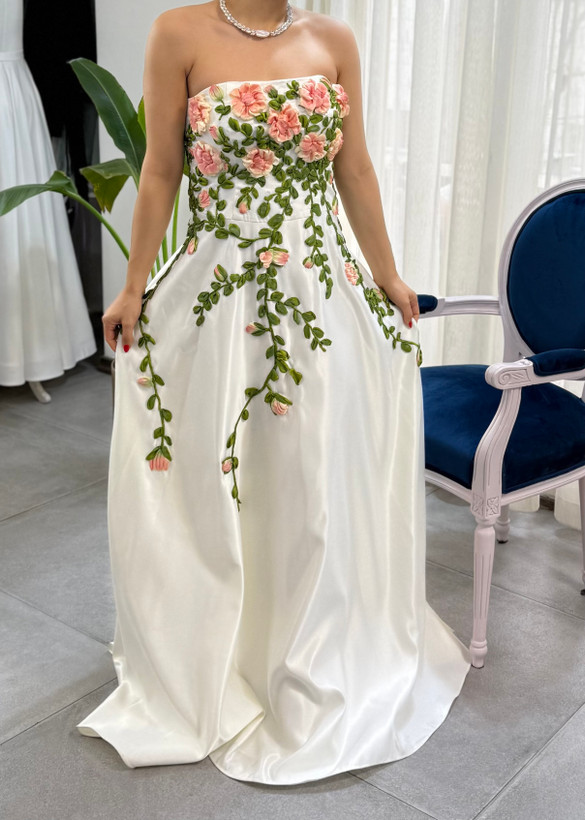 پیراهن عروسی و نامزدی روباندوزی و نقاشی پارچه تمام کار دست و قابل سفارش به دلخواه مشتری