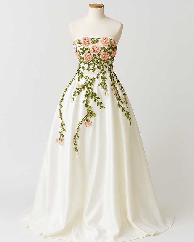 پیراهن عروسی و نامزدی روباندوزی و نقاشی پارچه