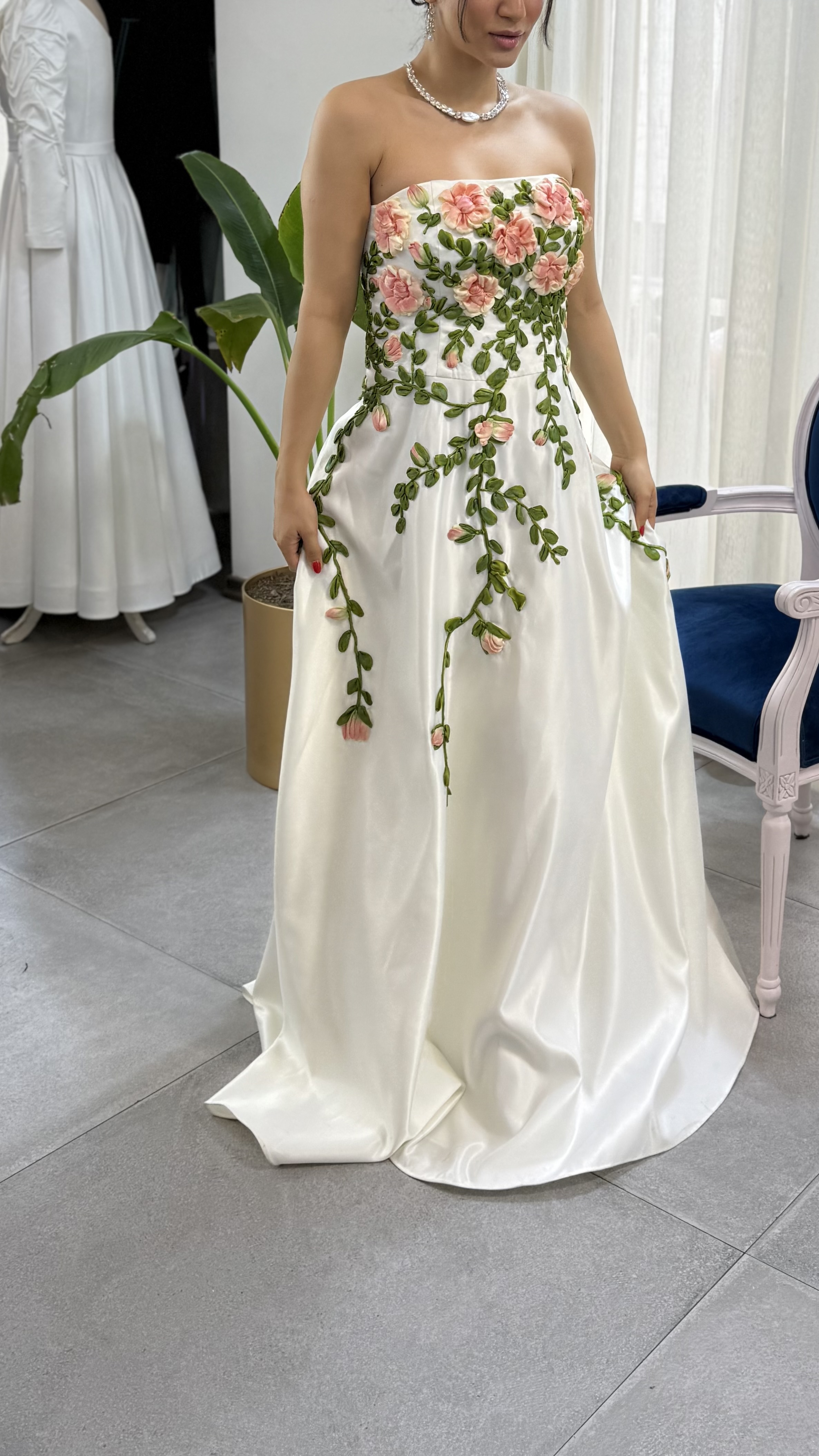 پیراهن عروسی و نامزدی روباندوزی و نقاشی پارچه تمام کار دست و قابل سفارش به دلخواه مشتری