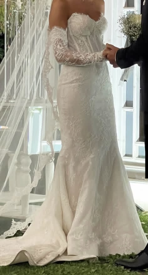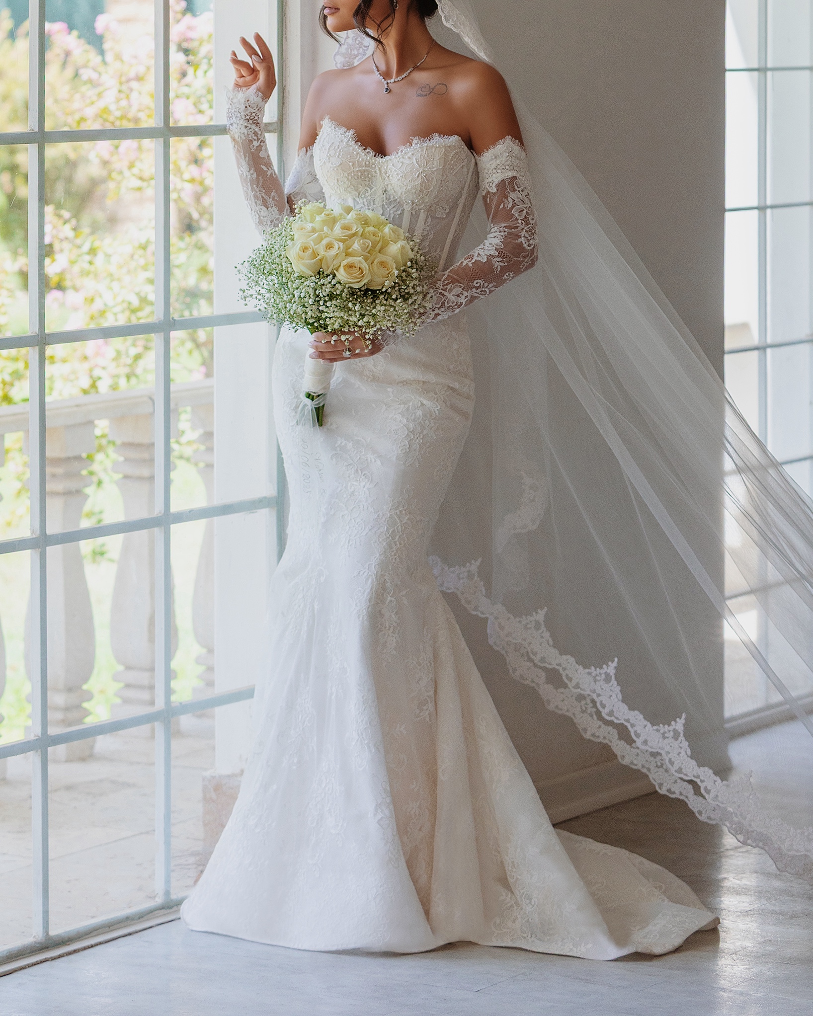 پیراهن عروس مدل مهسان، دانتل فرانسه، دنباله بلند، مدل ماهی قابل سفارش در سایزبندی