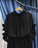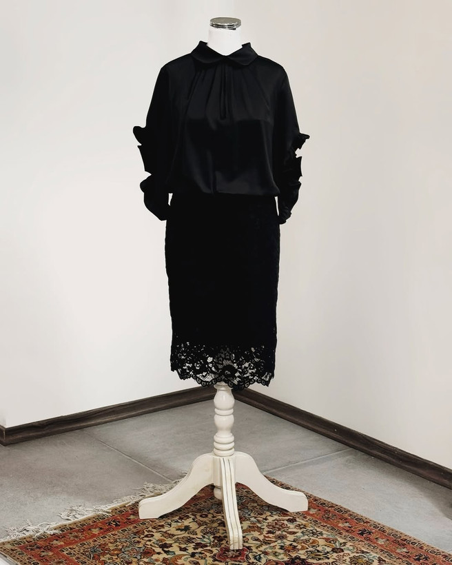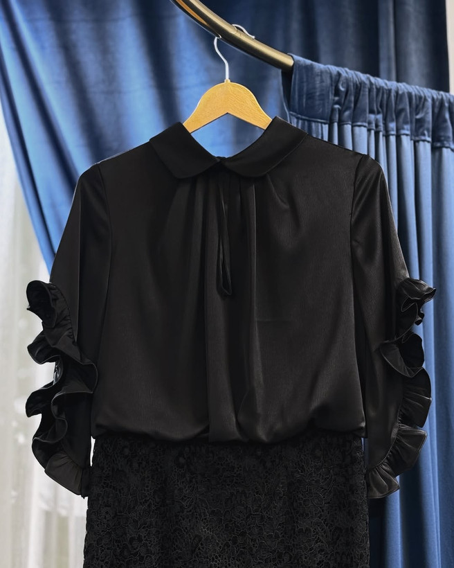 معرفی پیراهن «تاوَند» • نام: تاوَند از کالکشن برسا • سایزبندی: S M L XL • رنگ: مشکی • جنس: بالا تنه: کرپ ابریشم / پایین تنه: گیپور مشکی • طول دامن: تا زانو با حاشیهی توری • جزئیات خاص: آستینهای چیندار تئاتری، یقه پاپیونی کوچک • حسوحال: نیرومند، رازآلود، زنانه با اعتمادبهنفس بالا • بها: پیراهن «تاوَند» درست چون نامش ــ پر از تاب، گرما و حضور قاطع ــ یه لباسیه که همزمان هم رازآلوده، هم درخشان. پارچهی براق بالا و گیپور ظریف پایینش، ترکیب نرمی و قدرت رو با یه وقار خیرهکننده نمایش میده. اون آستینهای پُرچین؟ خودشون یک اعلام حضورن. هویت و داستان پیراهن: تاوَند زنیست که آتش را در دل نگاه میدارد، اما نورش را به اختیار میتاباند. او با نرمی میرقصد اما محکم گام برمیدارد. آستینهای موجدارش حرف میزنند، توری که پایین لباس را قاب گرفته چون سایهی شعلههاییست که زیر پوستش زبانه میکشند. تاوَند برای زنیست که در مهمانیهای شبانه نه با صدا، که با سکوت خیرهکنندهاش دیده میشود. او جسور است، اما هیچوقت بیدلیل نمیسوزاند. تاوَند یعنی زنِ تابان، زنی که حضورش دما دارد.