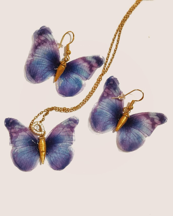 ست گردنبند و گوشواره پریاس ساخته شده از پروانه حریری و استیل بها با احترام: ۷۰۰.۰۰۰ تومان