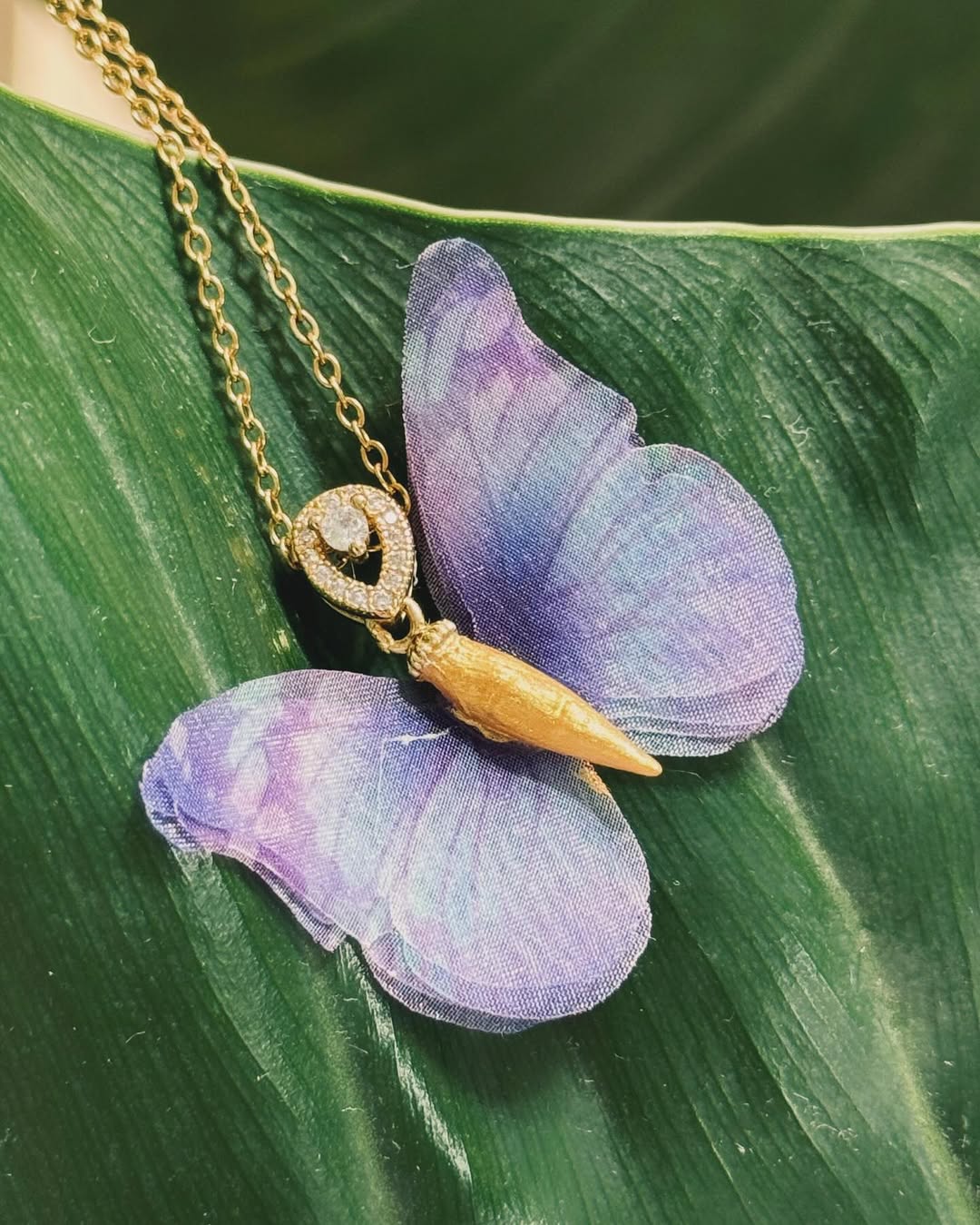 ست گردنبند و گوشواره پریاس ساخته شده از پروانه حریری و استیل بها با احترام: ۷۰۰.۰۰۰ تومان