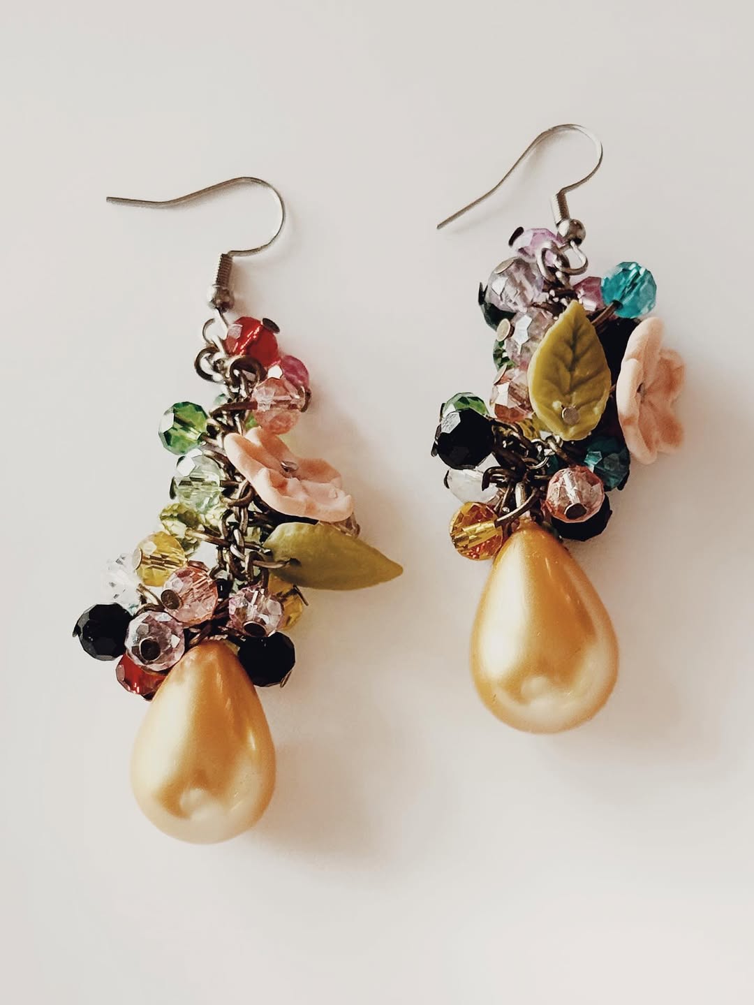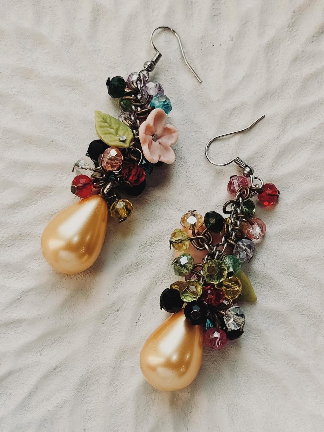 گوشواره پریدُر از کالکشن نیلسا ساخته از مروارید و گلچینی، استیل و سنگهای رنگی بها با احترام: ۵۲۳.۰۰۰ تومان